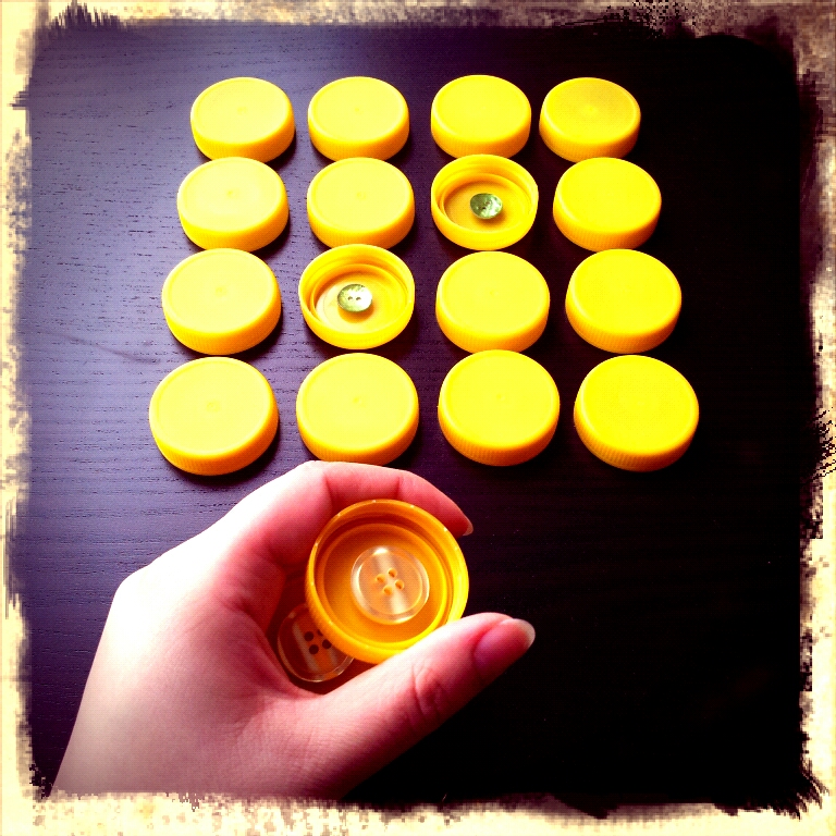 Ich habe noch ein paar zusätzliche Deckel gesammelt und habe mir vorgenommen, wenn ich schöne Knöpfe finde, werde ich das Spiel erweitern.