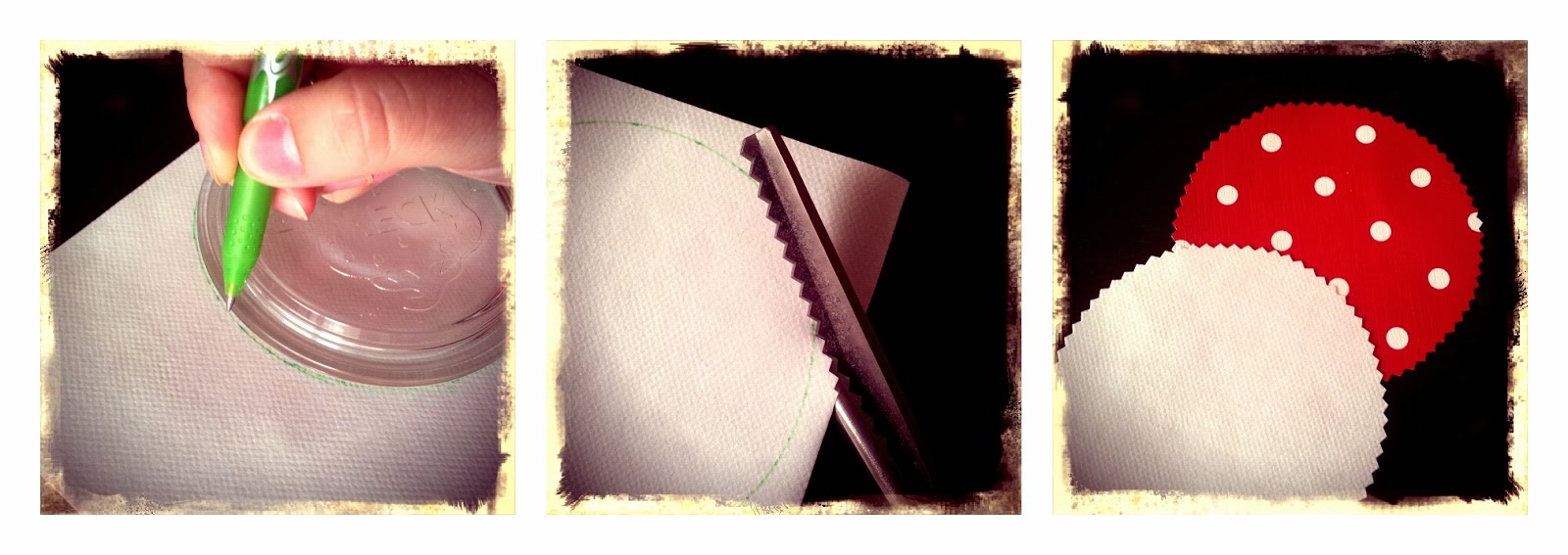 Dann wird mit Hilfe des Tellers einen Kreis gezeichnet … dann wird der Kreis ausgeschnitten (beim Wachstuch habe ich darauf geachtet, dass ich die Markierung wegschneide) … Teil eins ist fertig …