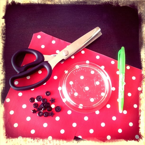 Natürlich kann man das auch aus Stoff machen … dazu braucht man die zwei Stoffreste … die werden kreisrund mit den schönen Seite aufeinander genäht und dann auch mit der Zickzackschere ausgeschnitten … und dann ebenfalls mir Kam Snaps verziert … Fertig!